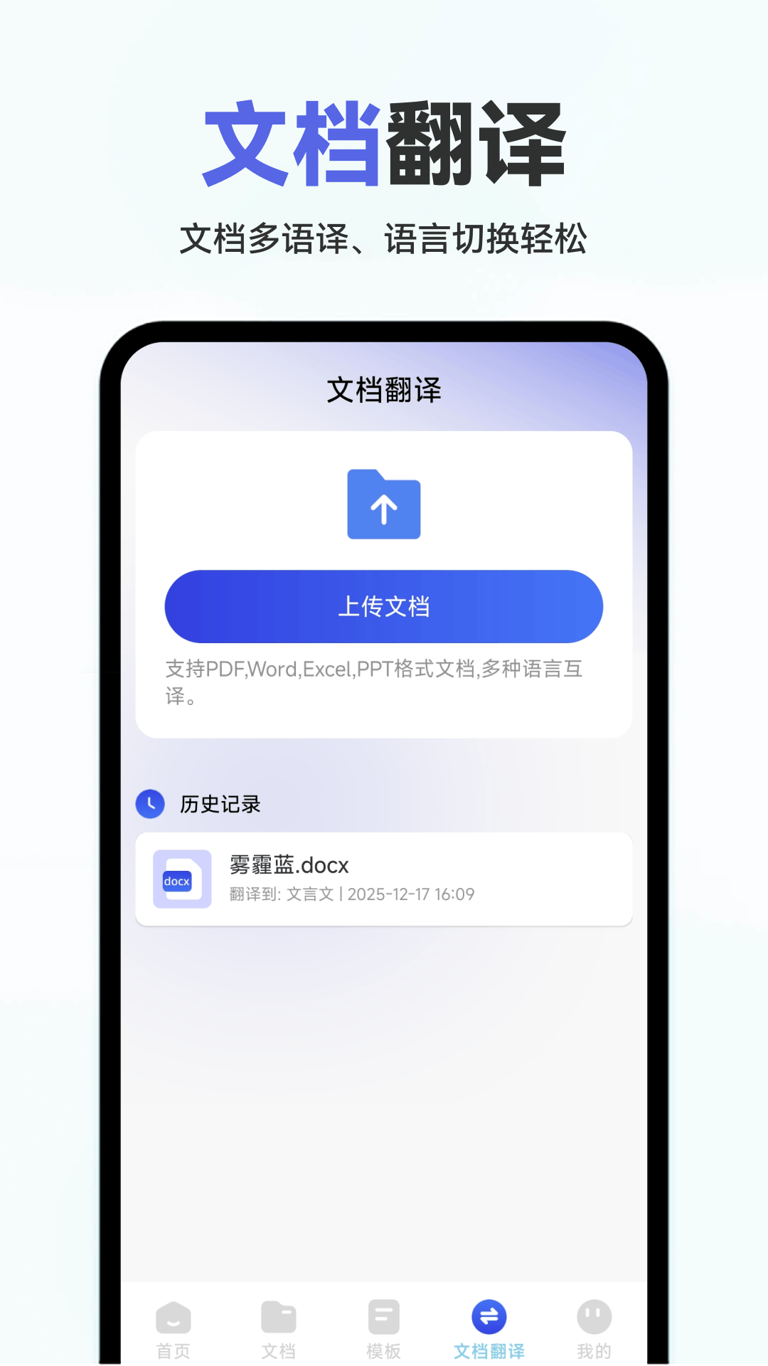 3、具备强大的文档翻译功能,用户可以上传PDF、Word等格式的文件,实现多语言互译。