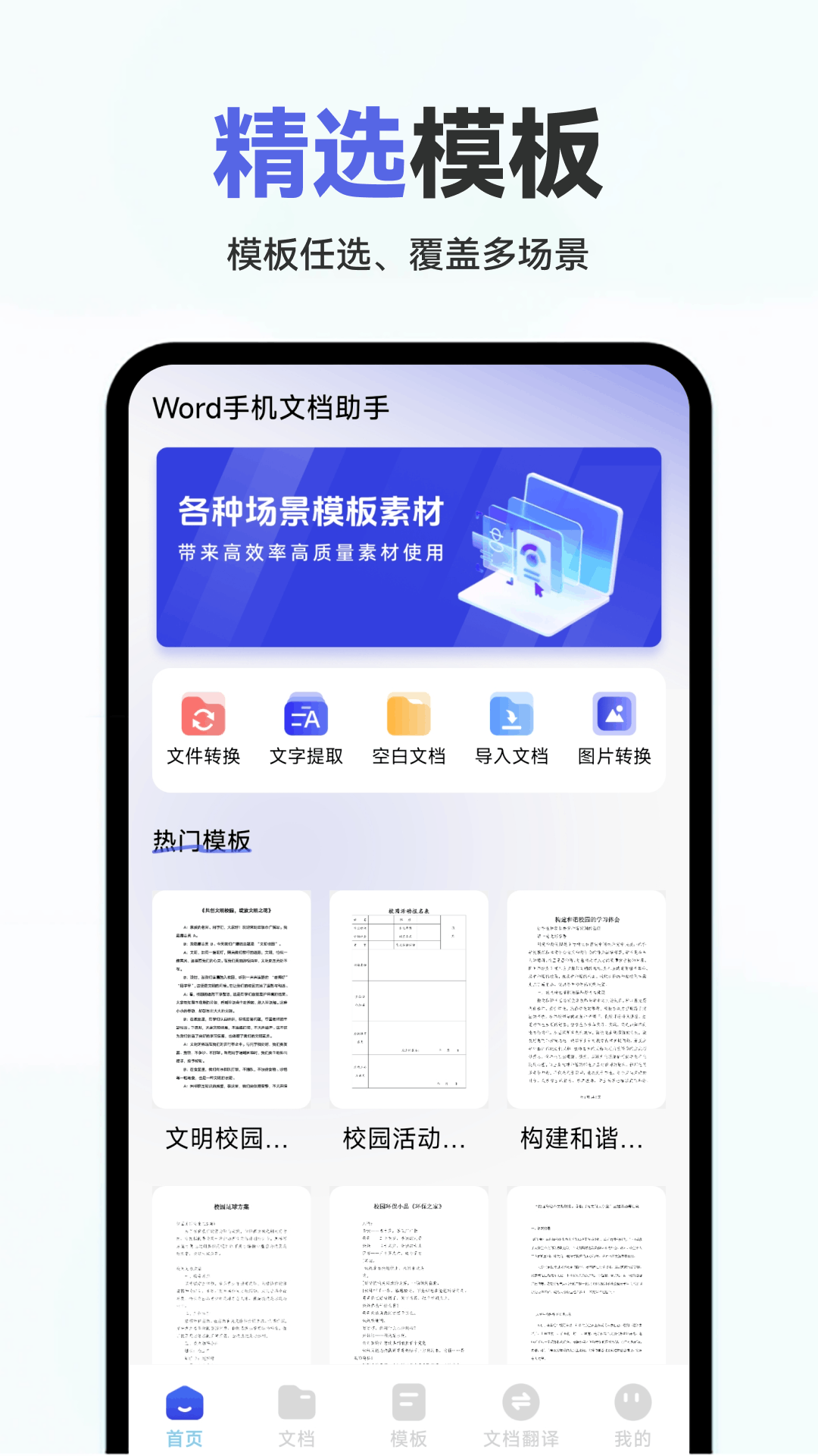 3、提供丰富的多场景文档模板,涵盖简历、报告、合同等多种常用文档类型。