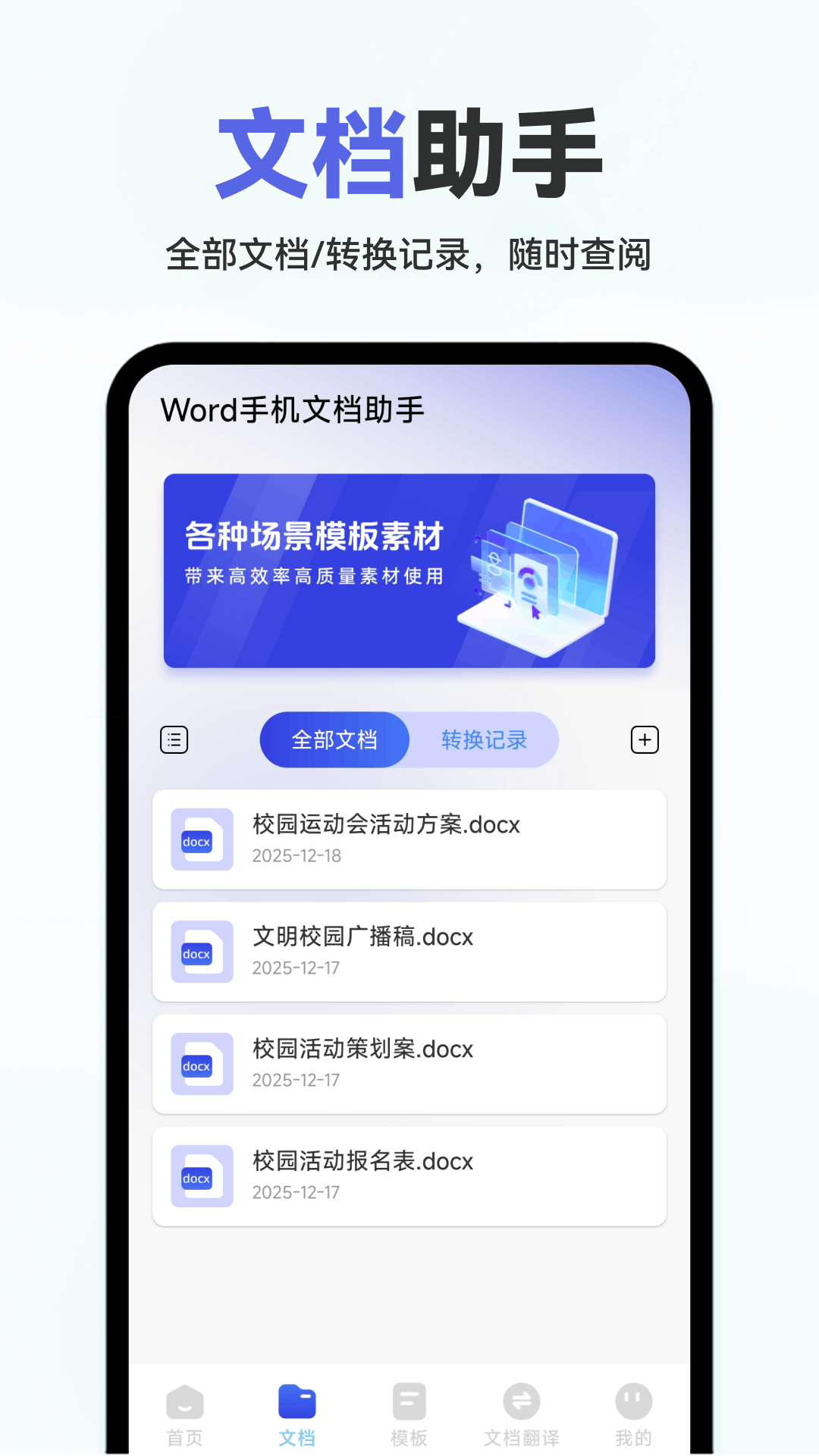 Word文档手机免费app是一款多功能手机文档管理软件,通过这个平台你就可以轻松制作自己所需要的文档类型,为了方便你更好的完成,平台还提供了各种的文档模板,方便你更好的在不同场景中使用,你还可以体验到快速的格式转换功能,它支持多种的文档格式,总有一种适合你。
