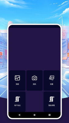 2、打开app,即可看到相册、相机、创建登功能,可以让你实现美图的拍摄。
