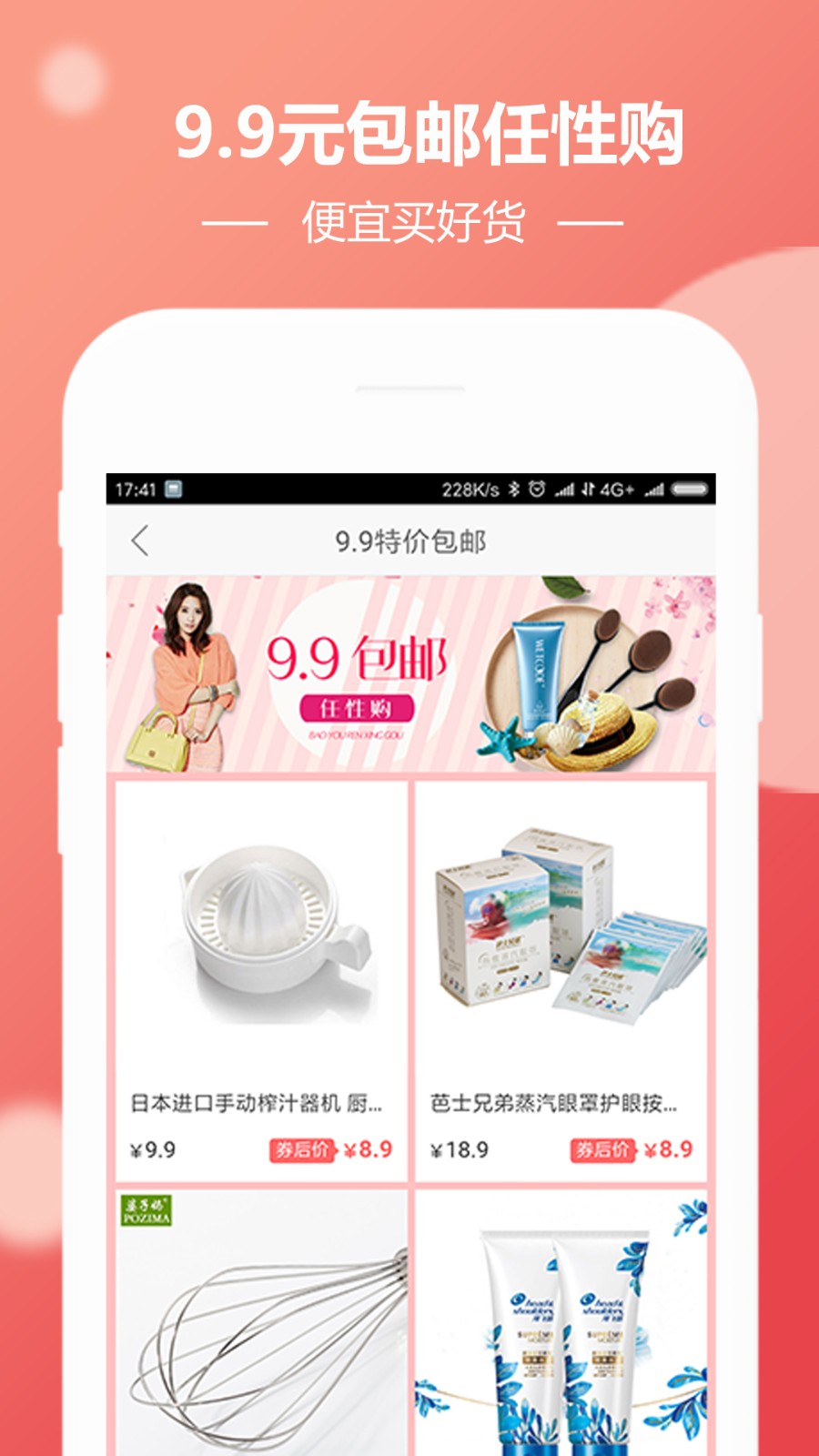 1、APP特设九块九包邮核心专区,精选海量性价比极高的生活产品,涵盖日用百货、小零食、家居小物件、美妆小样等。