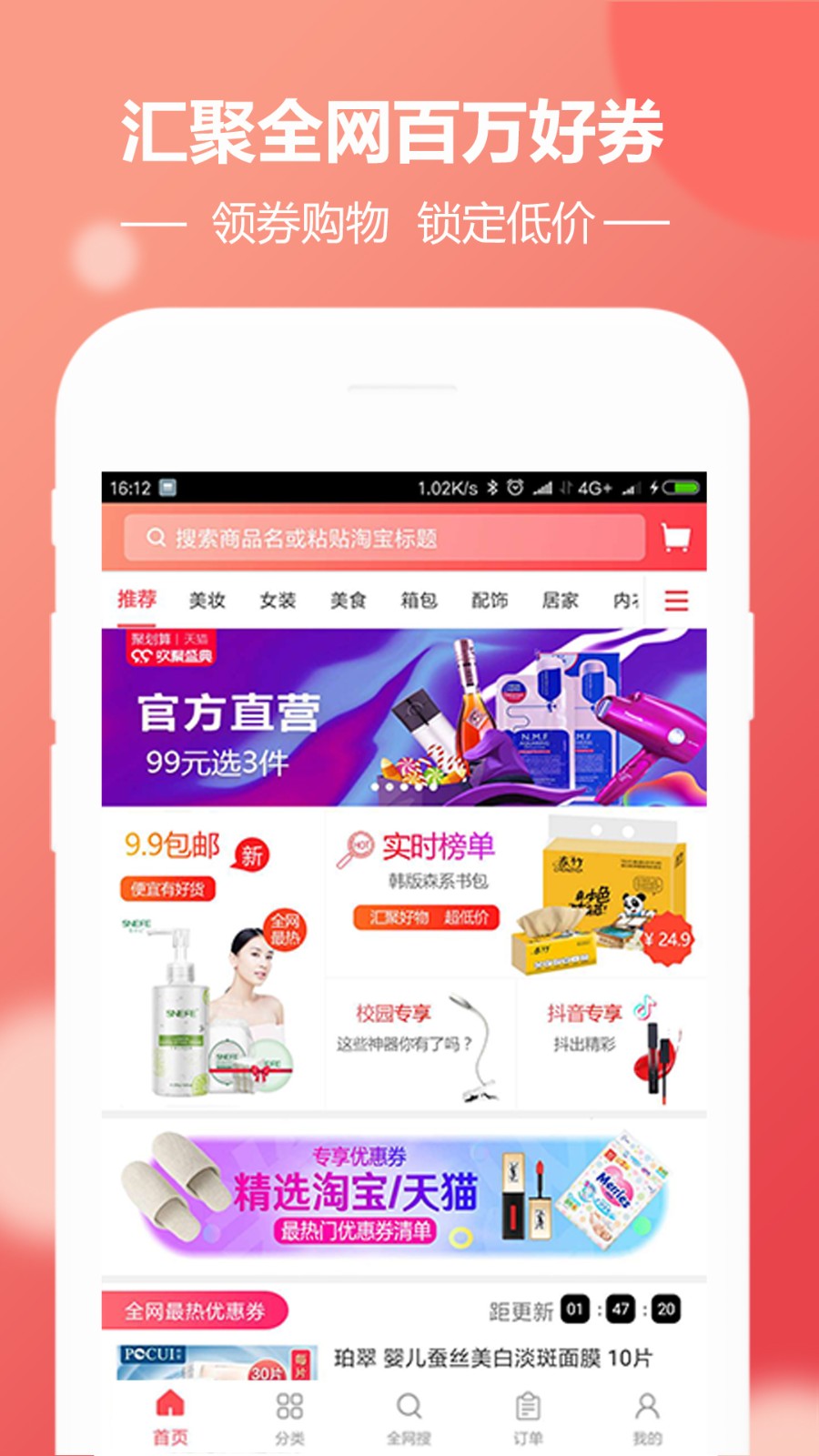 1、APP深度对接淘宝、京东、拼多多等头部电商平台,以及美妆、母婴、家居等垂直领域优质商家,汇聚百万级商品的专属优惠券。