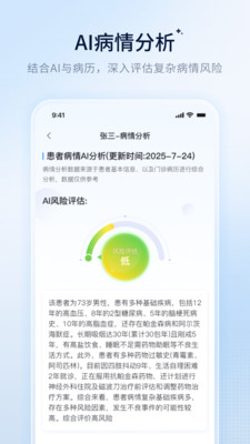 1、精准病情评估体系,基于多维度健康数据与临床标准,动态评估病情控制情况,为治疗方案调整提供专业数据支撑。