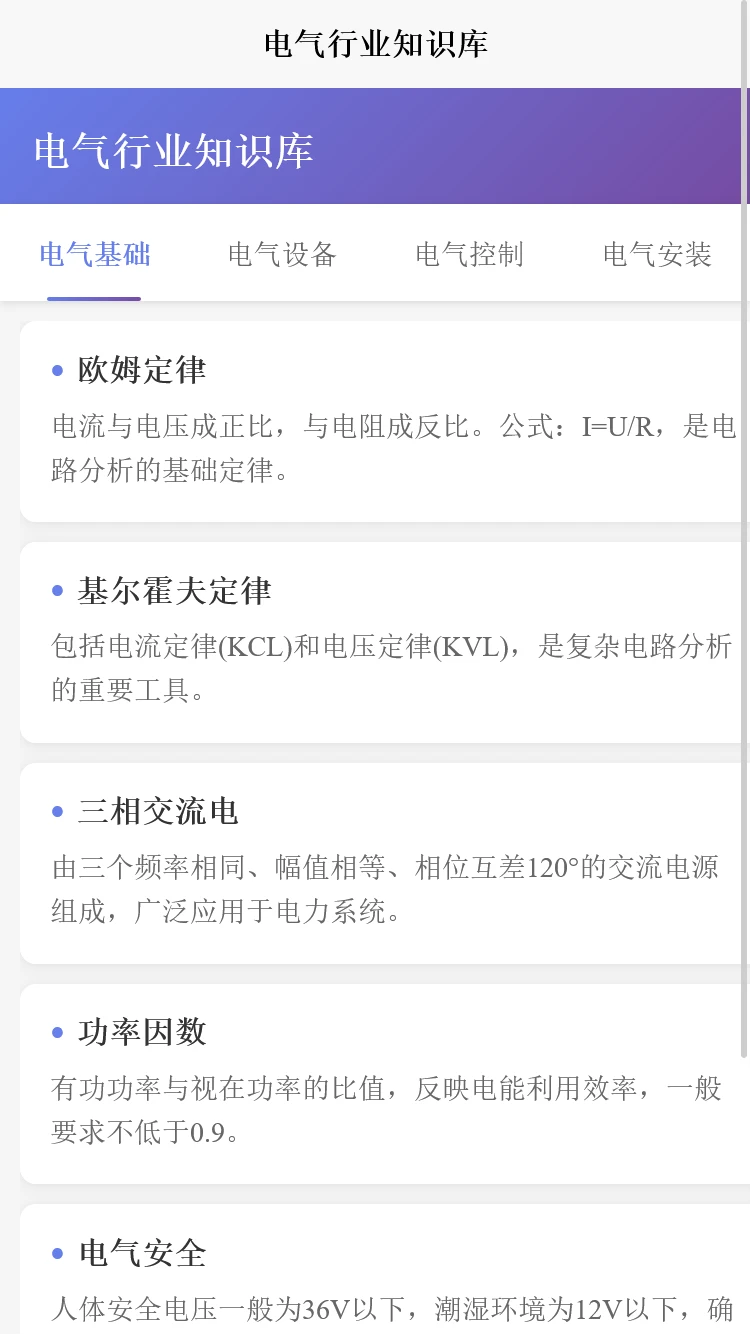 3、提供互动练习功能,用户可以通过模拟操作和练习题,加深对电气知识的理解。
