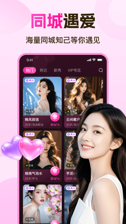 私信遇爱APP是一款主打高效匹配、真实视频、同城社交的视频交友软件,通过技术手段快速连接有缘人,创造轻松自然的相遇契机。软件的核心是3秒匹配,5秒相识的即时视频互动模式,让用户能迅速与同城或匹配对象进行真实视频聊天。平台深度融合语音交友、距离探测、家乡匹配等特色,并通过严格的用户审核机制保障社区质量,营造高质量的聚集地。结合全屏礼物与在线互动,帮助用户在轻松氛围中找到能深度交流的灵魂聊友。