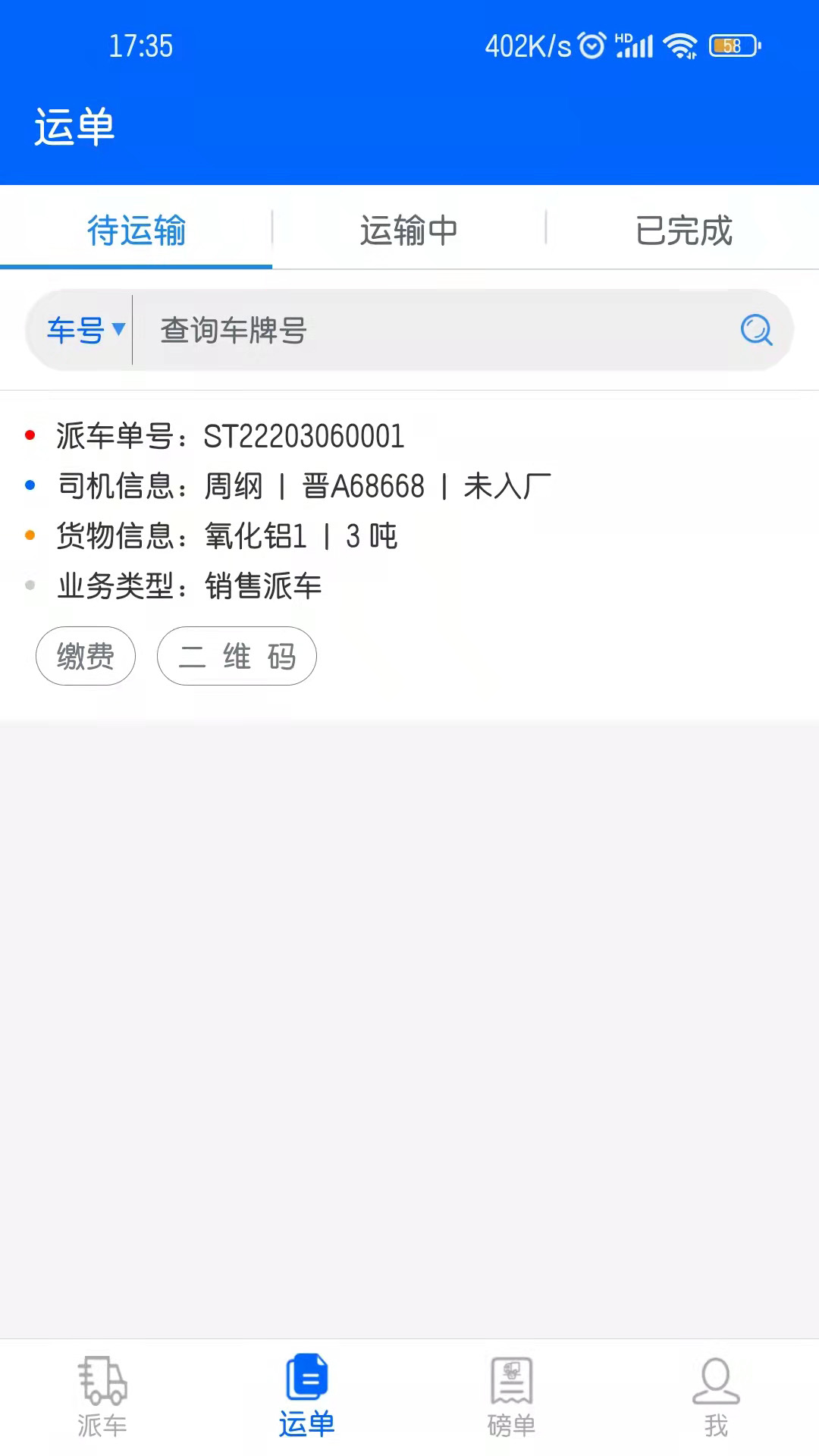2、司机或承运方可通过APP清晰查看调度中心下发的所有待处理的派车任务详情。
