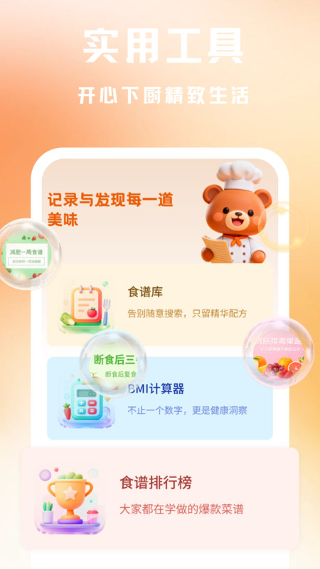2、菜谱贴近日常需求,每道菜的食材与配料标注清晰准确,用户无需担心买错材料,轻松跟随制作。
