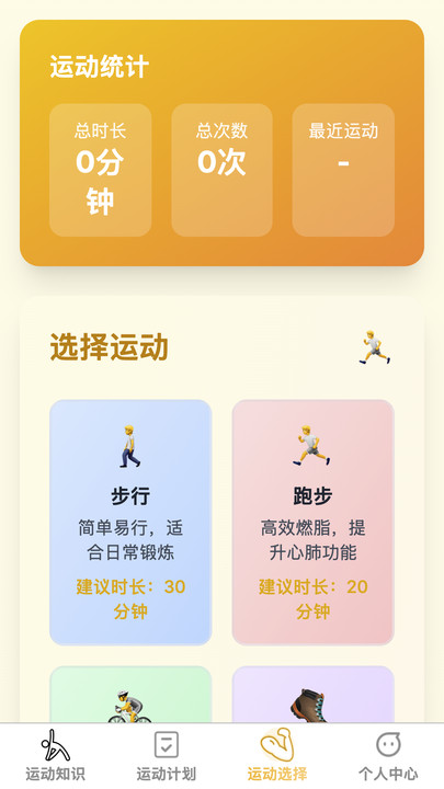 4、点击【运动选择】进入,选择相应的运动开始统计即可。