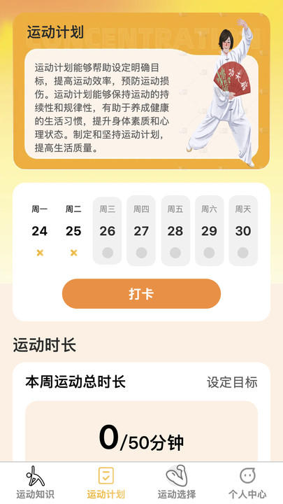 3、进入到【运动计划】,根据实际情况设置运动计划并且进行打卡。