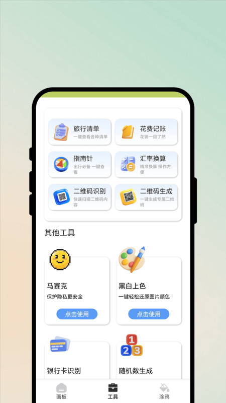 2、提供了智能的工具箱,如旅行清单、花费记账、指南针、汇率换算等功能开放。