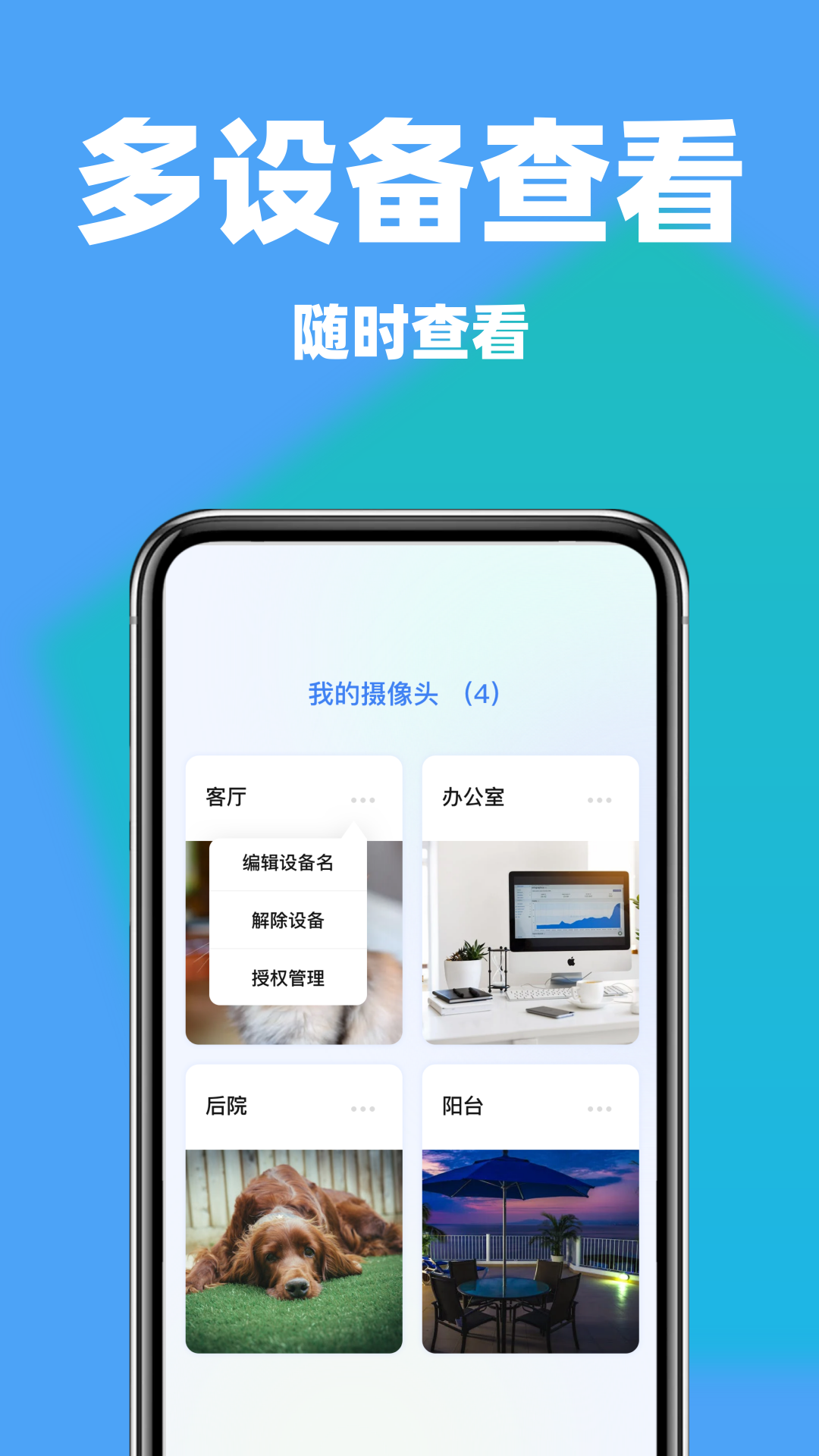 手机监控看家异地app可以实时守护你的家庭安全,一键就可以添加家中的监控设备,只需要扫码就可以快速的连接,这样的操作方式没有任何难度,不管是谁都可以轻松的上手,而且可以同时添加多个不同的设备信息,一个手机就可以轻松管理不同的区域,可以满足你的多样监控需求。