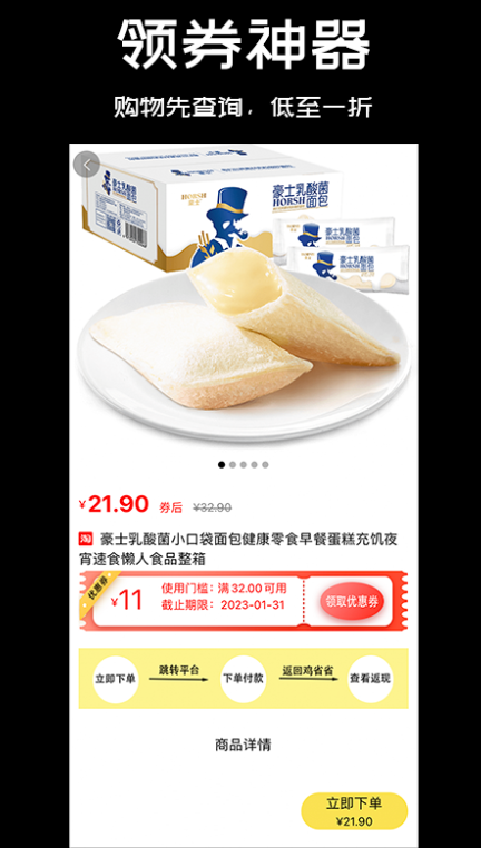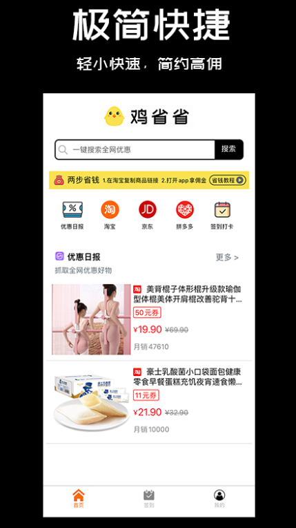 鸡省省app是一款很不错的优惠券在线领取省钱购物软件,喜欢购物的用户都是可以快速来这找到合适的优惠券,不同的优惠券将会为你提供的商品福利也是不同的,支持低价在线交易,交易的过程中也不需要等待,任你随时查看商品的详情,也可以及时来这和他人进行商品分享,多人组团购买价格更给力。