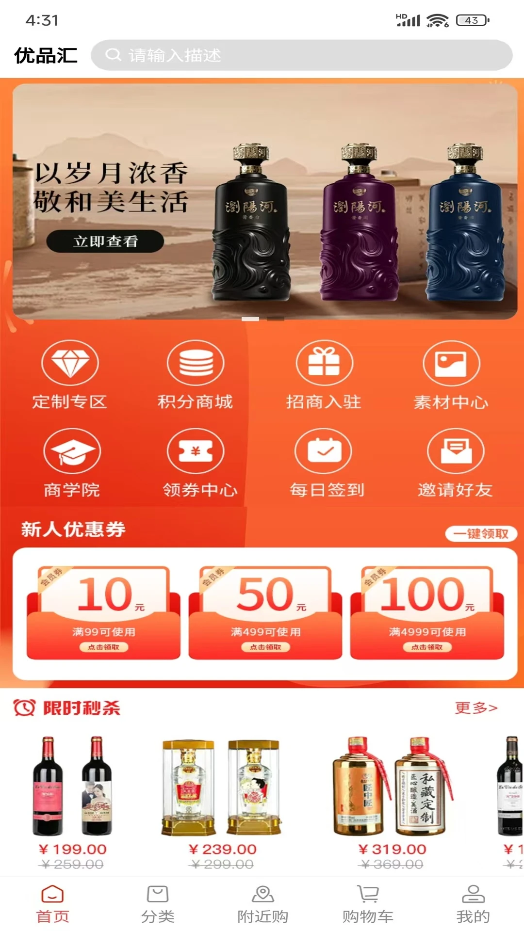 2、进入首页可以看到丰富的功能,随时随地线上选购。