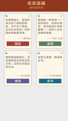 1、名言送福、每日更新励志名言,配以精美插画,传递正能量,启迪智慧。