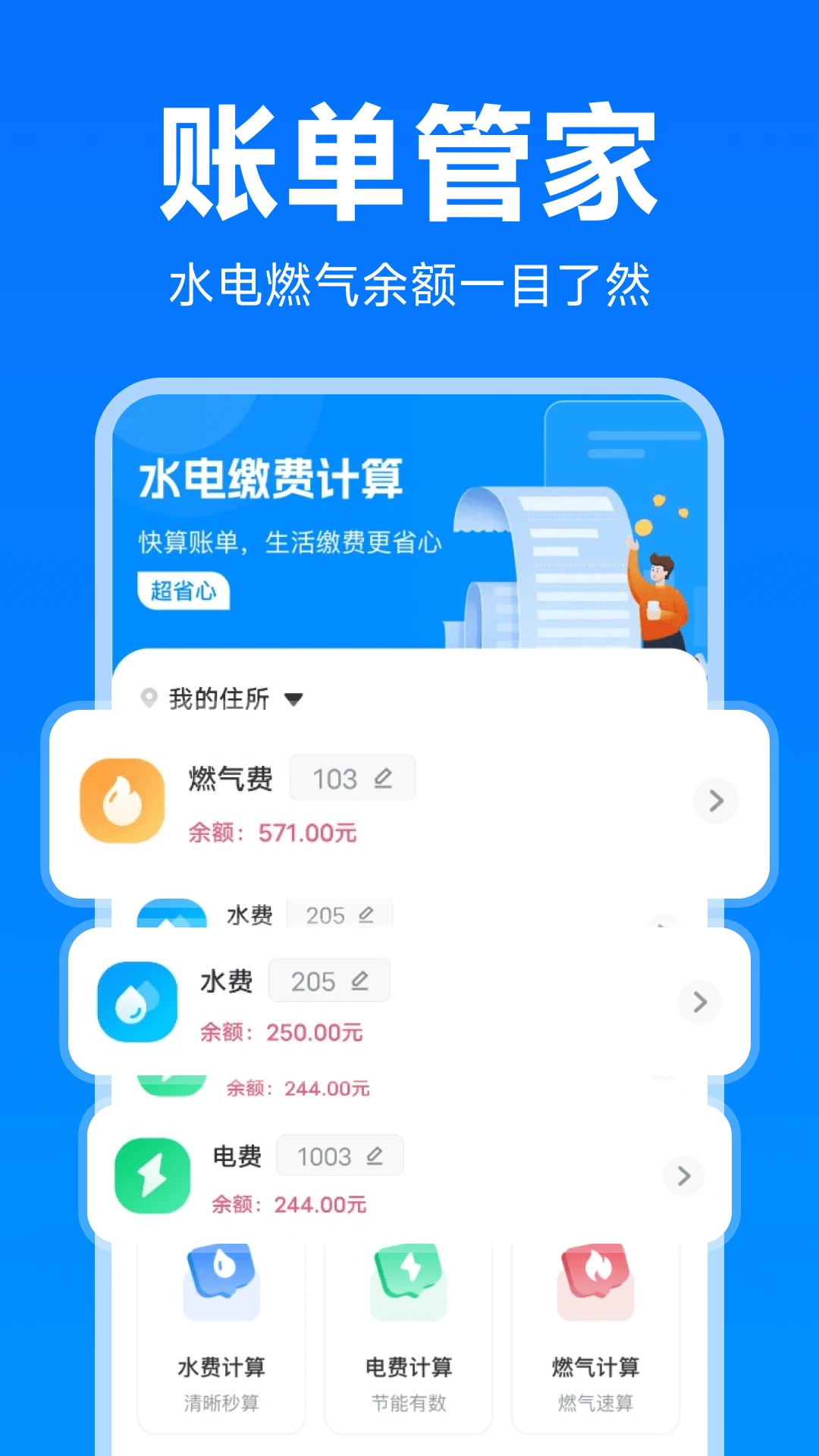 名称:水电燃气费计算