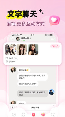 2、精准定位同城圈层,基于兴趣、性格标签智能匹配,告别无效社交,快速链接同频之人,让心动在熟悉的城市里悄然发生。