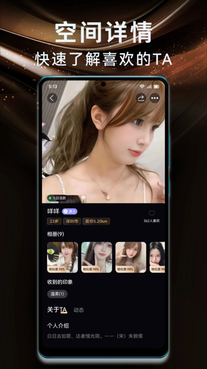 2、通过完善的个人资料、有趣的动态分享,增加个人魅力,吸引心仪对象主动联系。