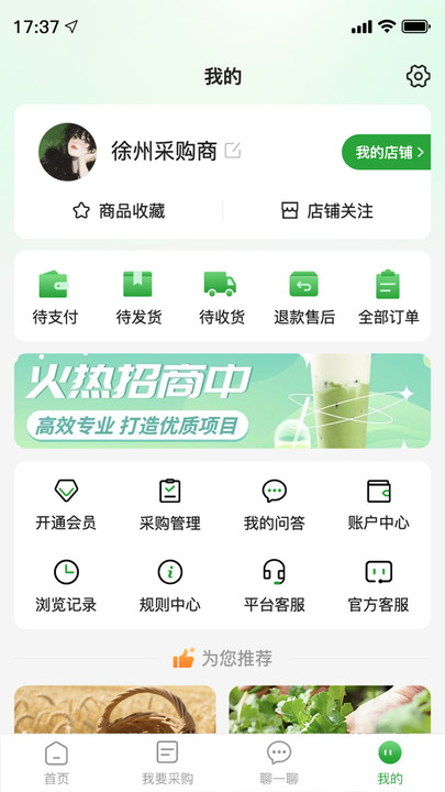 2、可在首页找供应商、采购、代办等一站式功能服务。