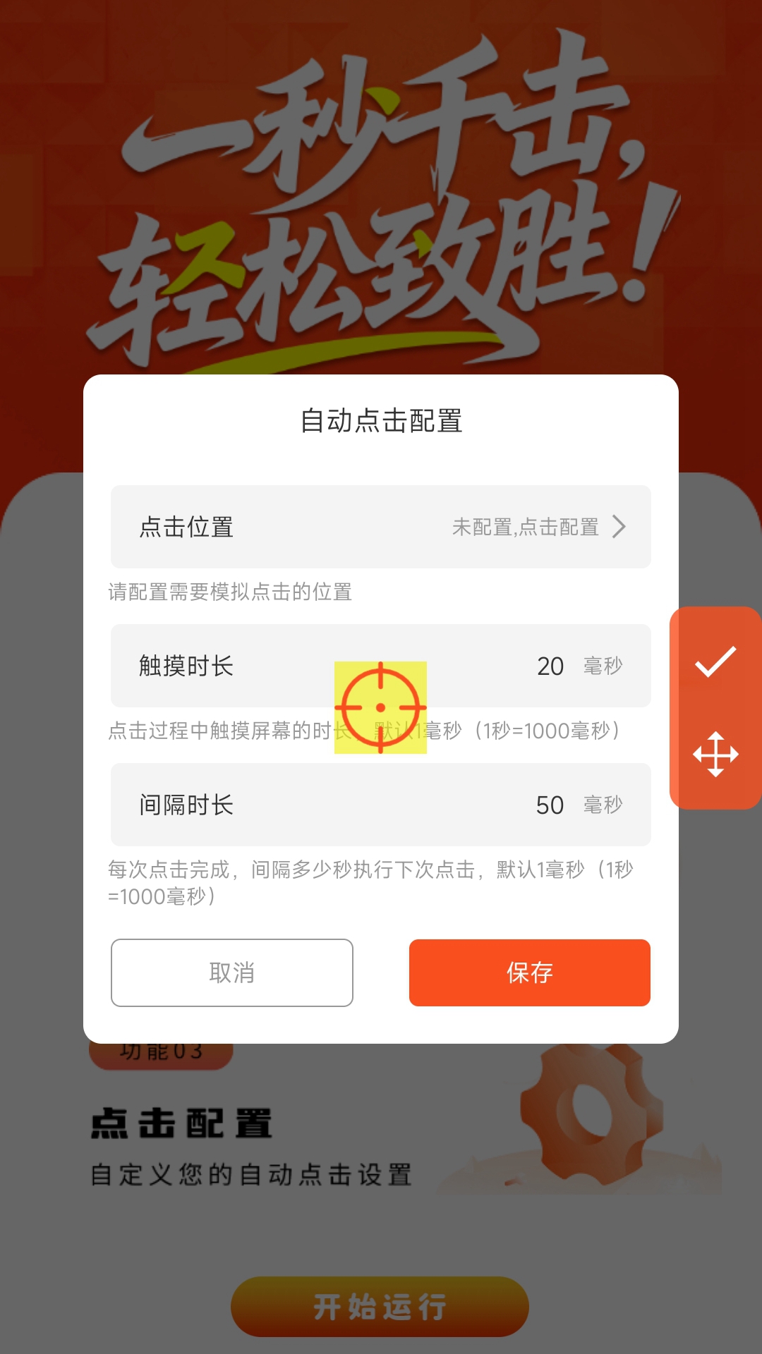 4、进行自动点击配置,保存之后点击开始运行即可实现自动化操作。