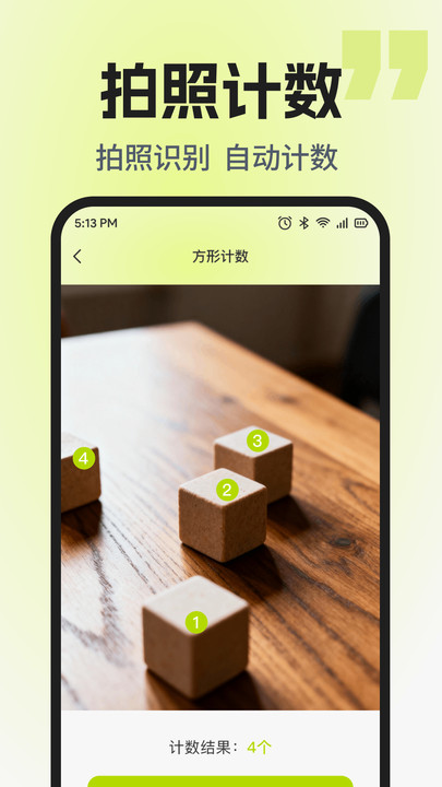 3、 内置拍照计数功能,可自动识别并统计画面中方形、圆形等特定形状的物品数量。