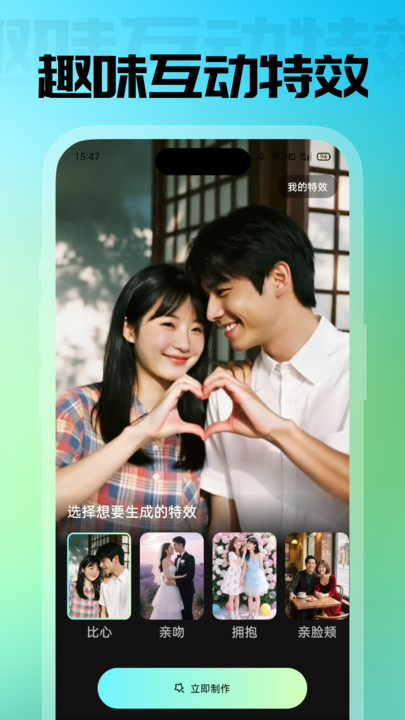 2、支持智能生成,用户上传照片后,自动匹配并应用合适的效果。