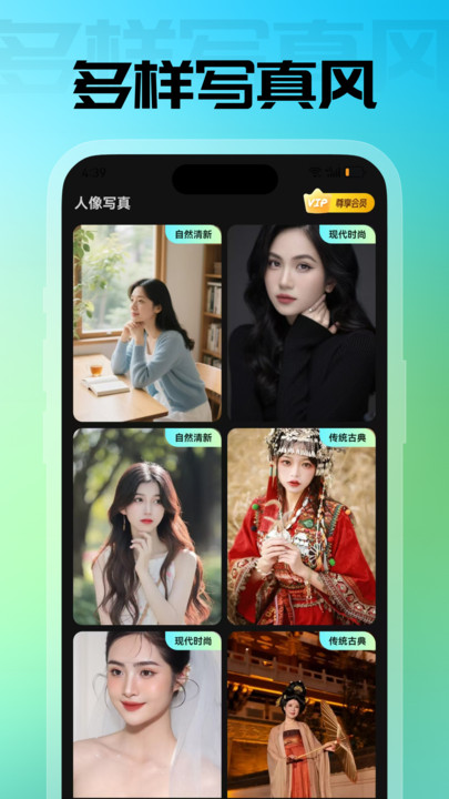 2、提供专业级的人像写真模板,可将普通照片一键生成影楼风格的艺术照。