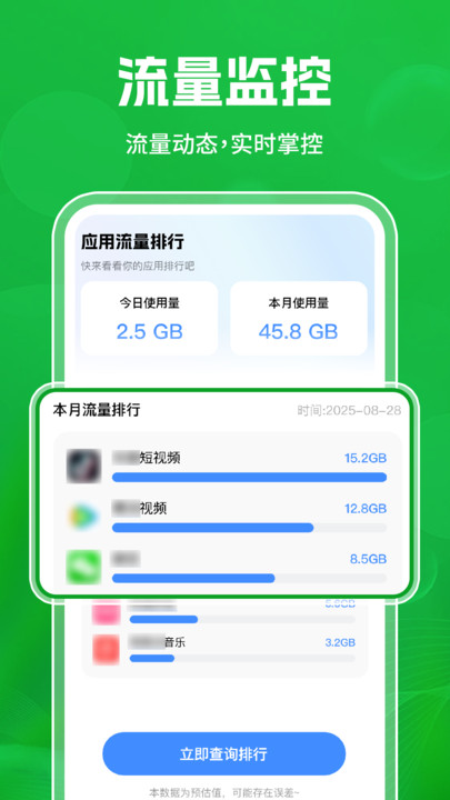 4、点击【流量监控】进入,手机里应用流量使用情况都是可以看到。