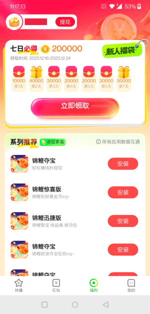 4、设有每日签到打卡任务,坚持签到可获得递增的金币或现金奖励。