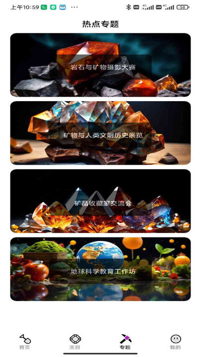 4、设有精心编排的矿物与宝石图片专题,不仅传播知识,也满足用户的审美与收藏兴趣。