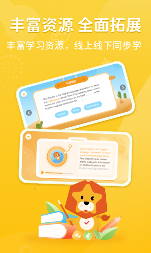 晓狮英语app是一款帮助学习英语的软件,app以点读、游戏为核心特色,精准匹配少儿英语学习需求。其同步课本的点读功能解决了家长辅导发音不标准的难题,让孩子轻松获取规范语音资源;趣味交互游戏则打破了传统学习的枯燥感,提升学习积极性;完善的学习辅助功能则为高效学习提供保障。