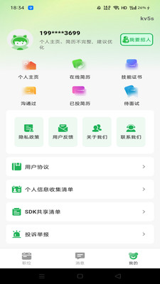 4、进入个人中心可以编辑主页信息,修改在线简历等。
