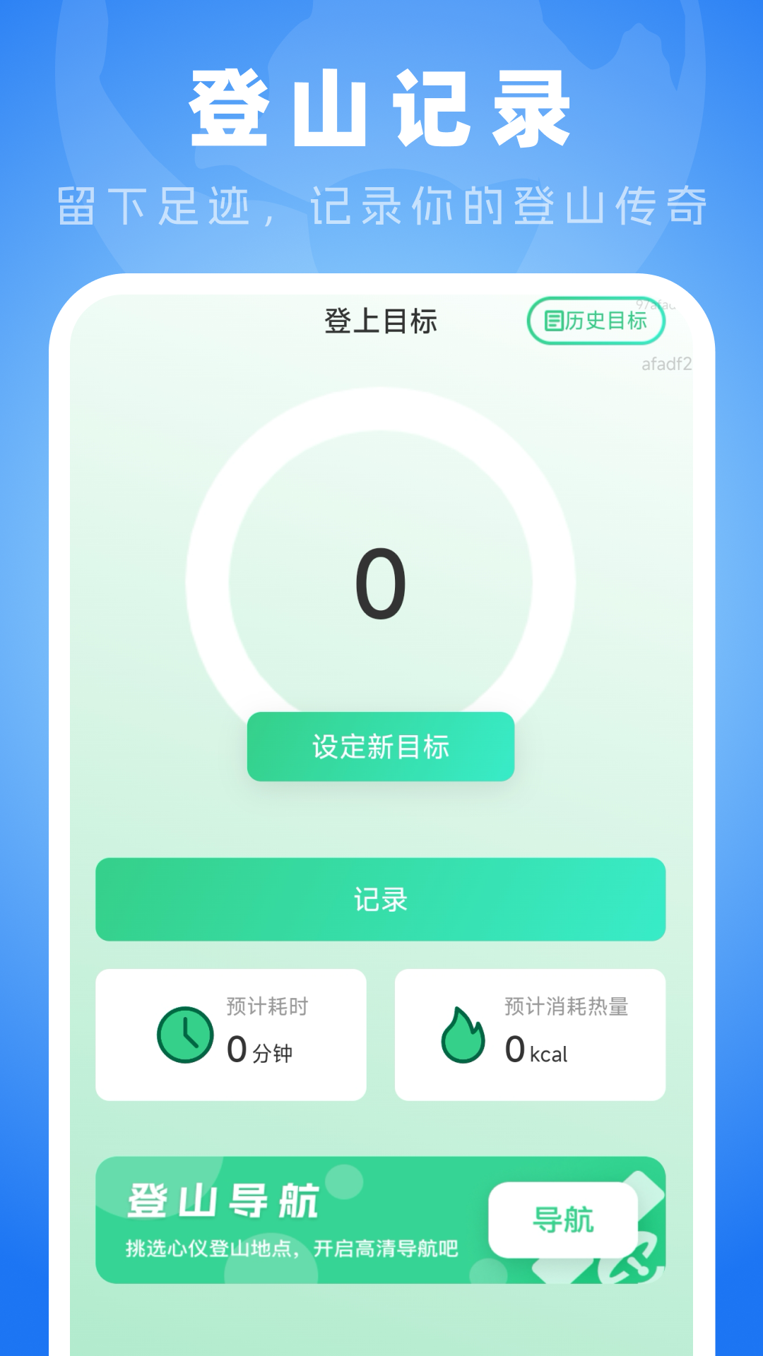 2、随时记录登山里程、时间等,还可设置目标进行打卡操作。