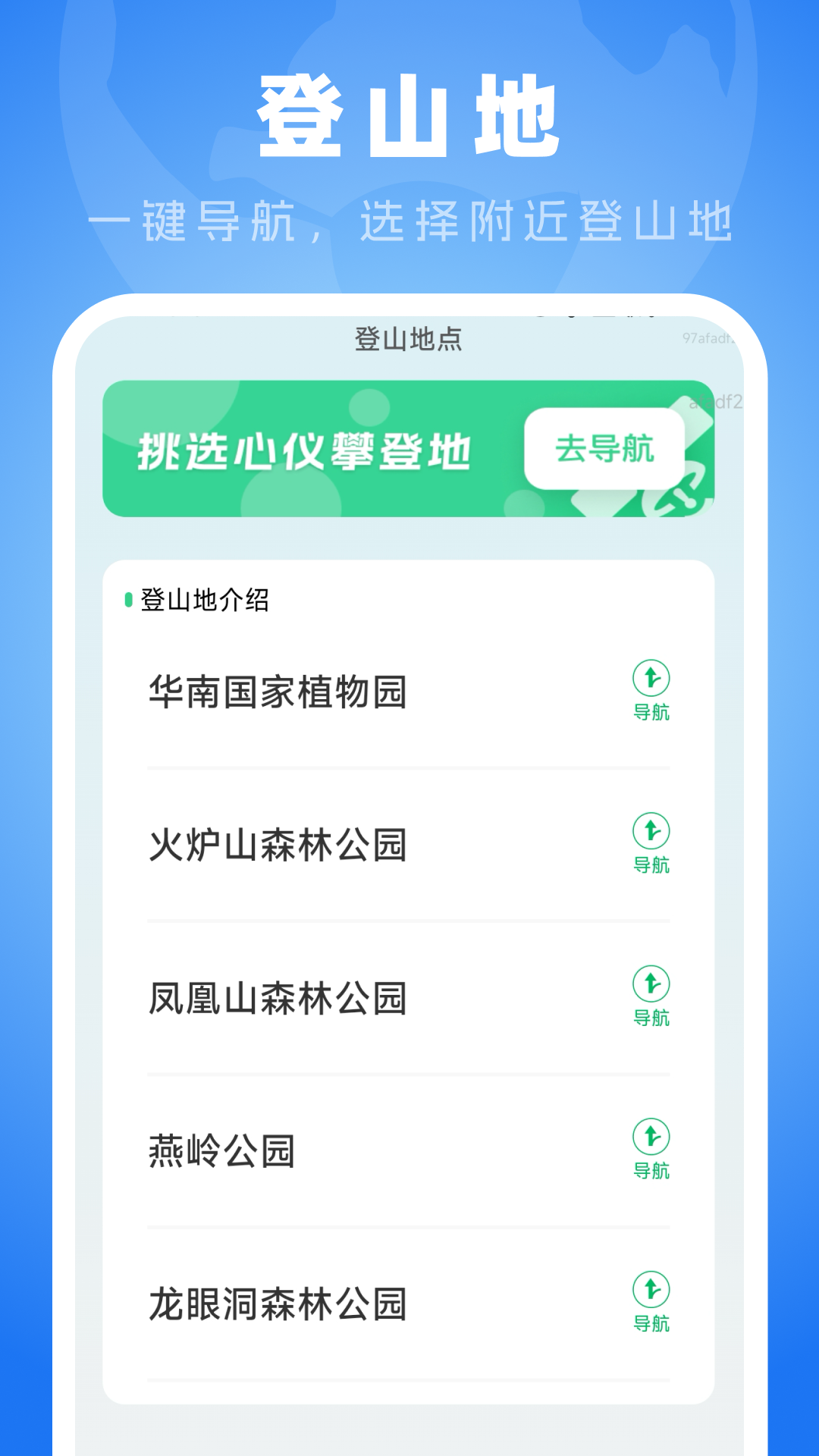 3、开启定位模式后,可为你查询更多攀登地,并提供导航一键直达。