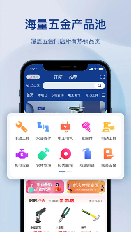 2、平台涵盖五金工具、建筑五金、水暖器材、劳保用品等全品类五金产品,小到螺丝、锁具,大到电动工具,无论是工程施工,还是日常维修,都能精准匹配所需商品。