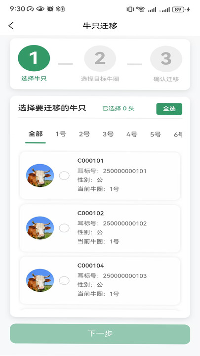 1、对牧场内的圈舍进行清晰的分区管理,可查看每个圈舍的牛只列表、容量、当前头数。
