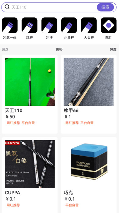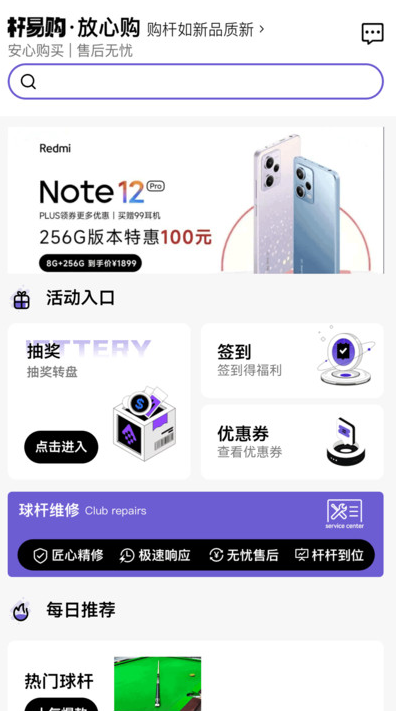 3、在首页上汇集了大量的闲置台球杆,用户可以随时挑选。