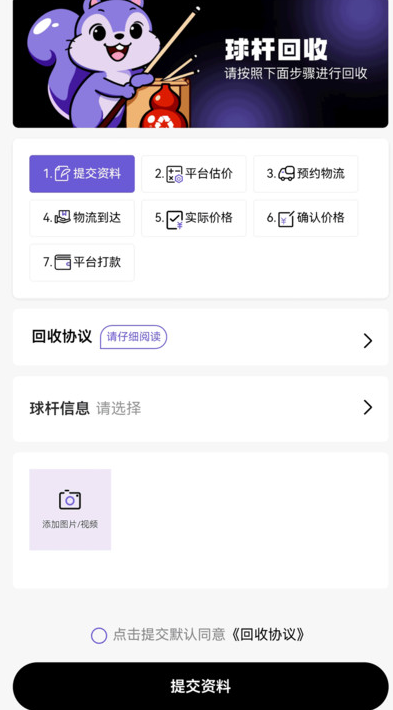 1、用户可按提示填写台球杆的基础属性、使用状况、期望回收价格等核心信息。