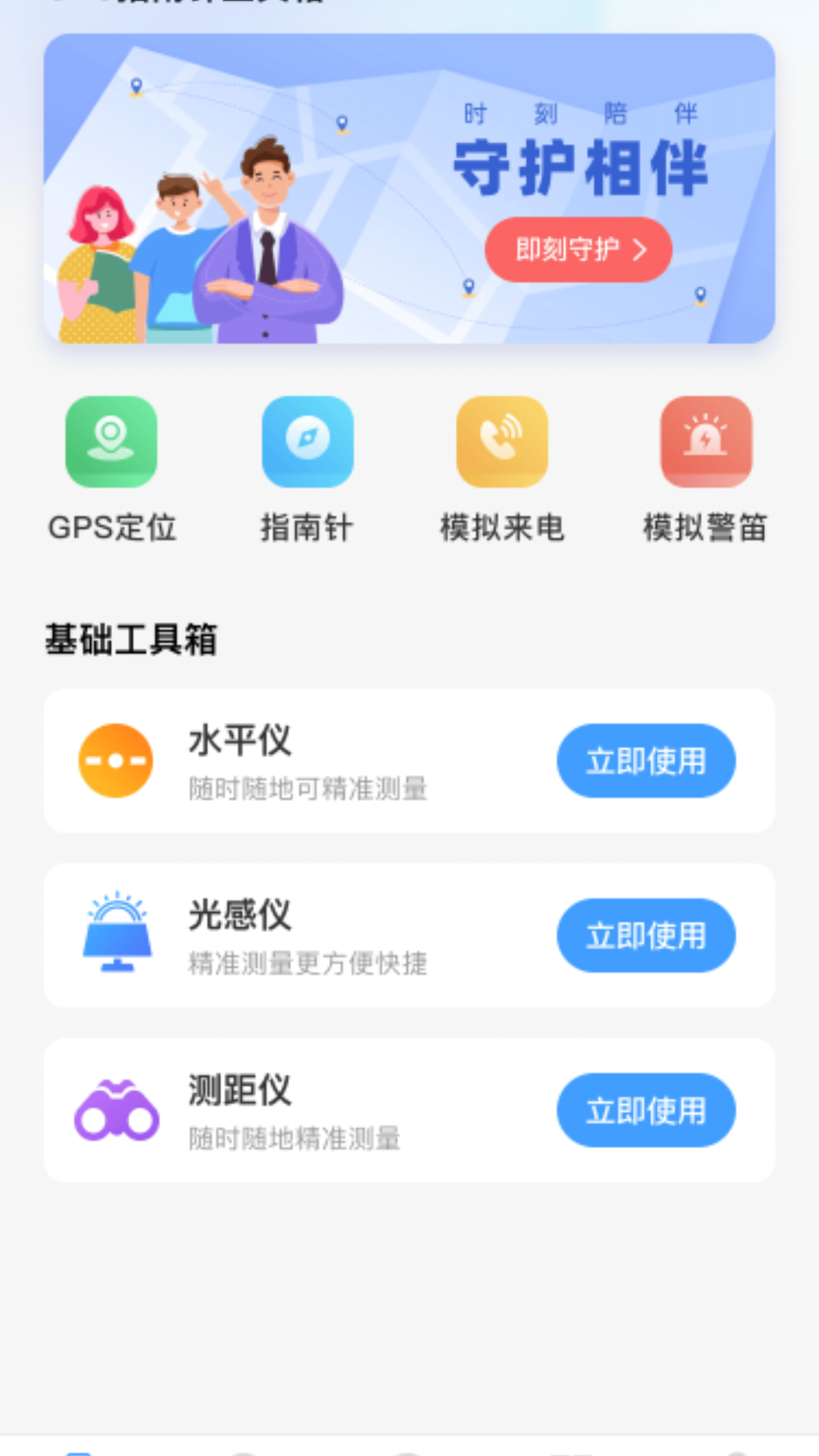 GPS指南针工具箱app是一款包含了多种精准传感工具的手机助手,有GPS定位、指南针、水平仪、光感仪、测距仪等功能可以满足大家的使用需要,不管是日常生活中还是办公有需要都可以使用,给用户带来便捷体验,也可以帮助大家在户外精准的辨别方向,不用担心迷路。功能非常的全面,还支持下载离线地图,让大家在没有网络的情况下也能使用。