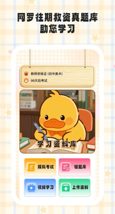 小鸭爱学app是一款专注于教师资格证的学习软件,不少的备考考生们都在这学习,线上的学习资源将会随时更新,用户可以及时设置你的备考学科,方便系统快速为你匹配合适的题库资料,一键就可以在线搜索学习,答题方便简单,也可以定制个人的学习计划和学习目标,让你高效备考成功,并且不需要额外花钱去报班学习。