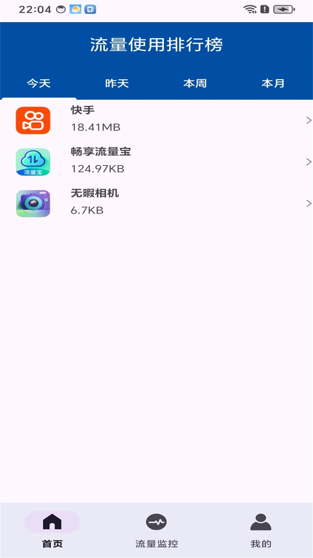 2、进入首页可以看到丰富的功能,手机应用流量使用排行都是可以看到。