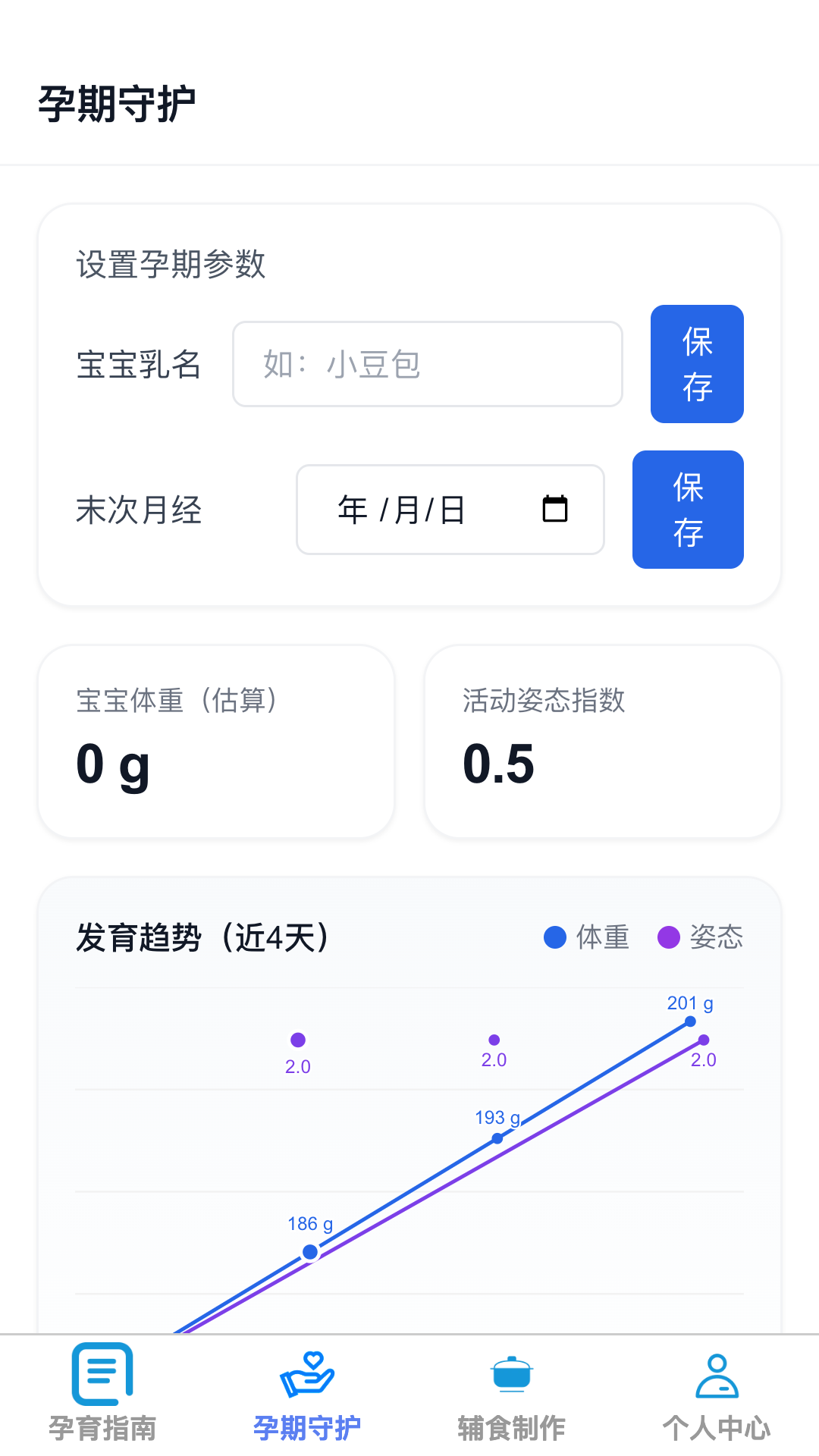 3、个人中心管理,记录孕期体重、胎动、产检等重要信息,支持多账号管理,方便家庭成员共同参与育儿过程。