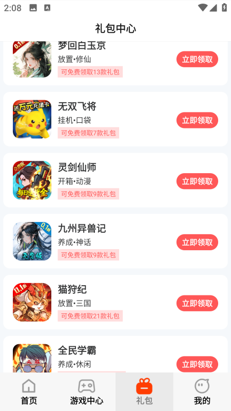 3、平台每日更新丰富的热门游戏福利礼包,涵盖多种热门游戏。