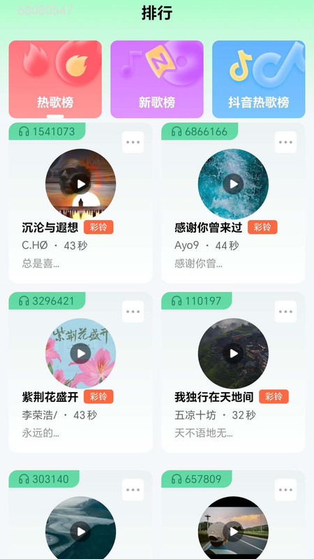 1、聚合热歌榜、抖音热歌榜等实时榜单,汇集流行金曲、影视原声等多样资源,全面满足铃声需求。