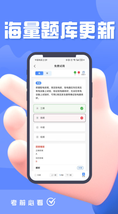 电力安规考试题峰app是一款为考生们提供的考前在线刷题备考学习软件,线上的学习资源都是最新上线的,每个考生都是可以根据个人的学习需求一键来这找到对应的备考资料,支持快速在线刷题,也支持一键查看自己的错题或者是难题,还可以随时来这定制你的个人学习计划,让你每天都可以进步一点点,轻松通过考试。