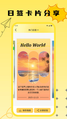 1、个性日签卡片自由生成,支持自定义风格、字体与背景,按需打造专属文字卡片,保存分享一键完成,彰显独特品味。