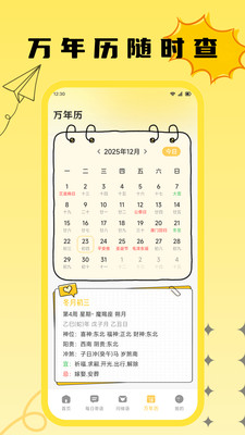 2、内置实用万年历功能,节日节气、宜忌事项一目了然,结合当日语录推送,让文字陪伴与生活规划无缝衔接,贴心又实用。