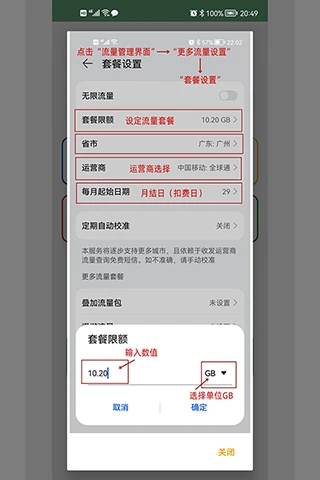 3、进入到【套餐设置】,可以根据实际手机情况进行流量套餐设置。