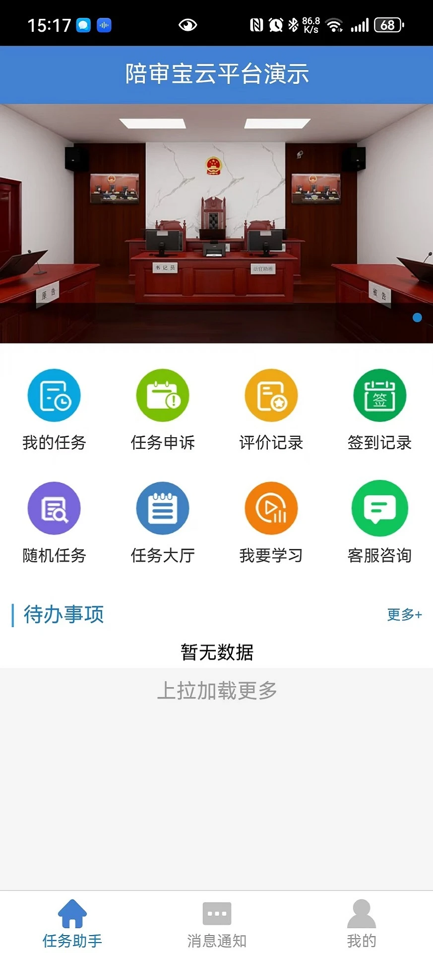陪审宝云平台app下载是一款互联网+司法服务创新平台,旨在为人民陪审员制度的数字化管理与高效运行提供一体化解决方案。它将陪审员的抽选、参审任务管理、在线考勤、履职考核、在线学习及补助核算等全流程功能集于一体,深度整合于微信公众号等移动端。系统支持法院管理者一键发布参审任务,陪审员可一键参审确认、一键签到记录出勤、并在参审后一键评价反馈。