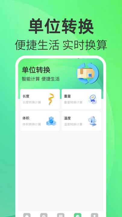 2、长度面积体积温度速度重量压强能量功率九大类全覆盖,输入数值即时显示所有单位换算结果,可反向输入自动同步,工程现场零误差。