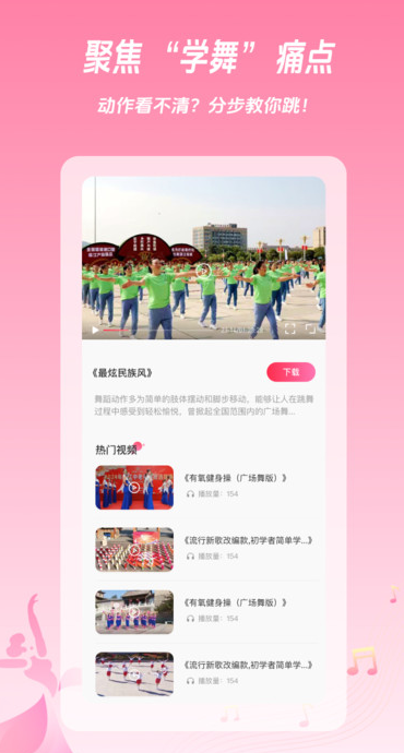 3、用户可以一键下载想要的广场舞,这样方便随时在线学习。